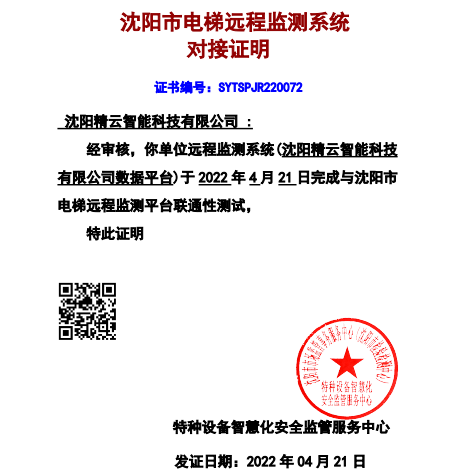 電梯物聯(lián)網(wǎng)設(shè)備通過沈陽市電梯遠(yuǎn)程監(jiān)測系統(tǒng)驗證